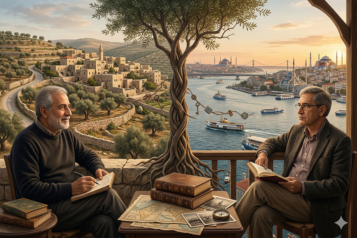 في أدبِ كُلٍّ مِن الروائي الفِلَسْطيني إبراهيم نصر اللَّه (وُلد 1954) والروائي التُّركي أُورهان باموق (وُلد 1952)، تتحوَّل الأمكنةُ إلى ذاكرة نابضة، تُحمَل فَوقها تجارب الفقد والمنفى والانتماء، وتُصبح مَسرحًا تتقاطع فيه الذات الفردية مع التاريخ الجَمْعي.