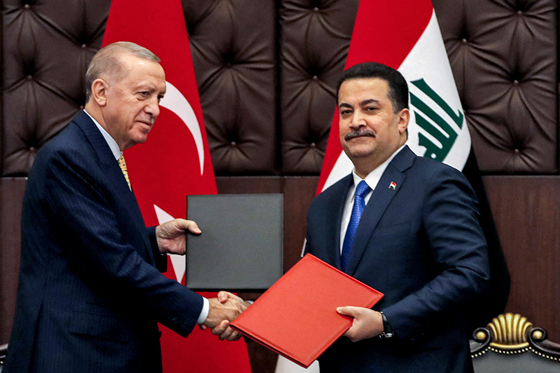 في الشهر التالي، زار الرئيس التركي رجب طيب أردوغان العراق للمرة الأولى منذ أكثر من اثني عشر عاماً. وقَّع مع رئيس الوزراء العراقي محمد شياع السوداني اتفاقية إطارية إستراتيجية، إضافة إلى 26 مذكرة تفاهم ذات صلة، تلزم البلدين بتعزيز التعاون في مجالات الأمن، والتجارة، والطاقة، وإدارة المياه.